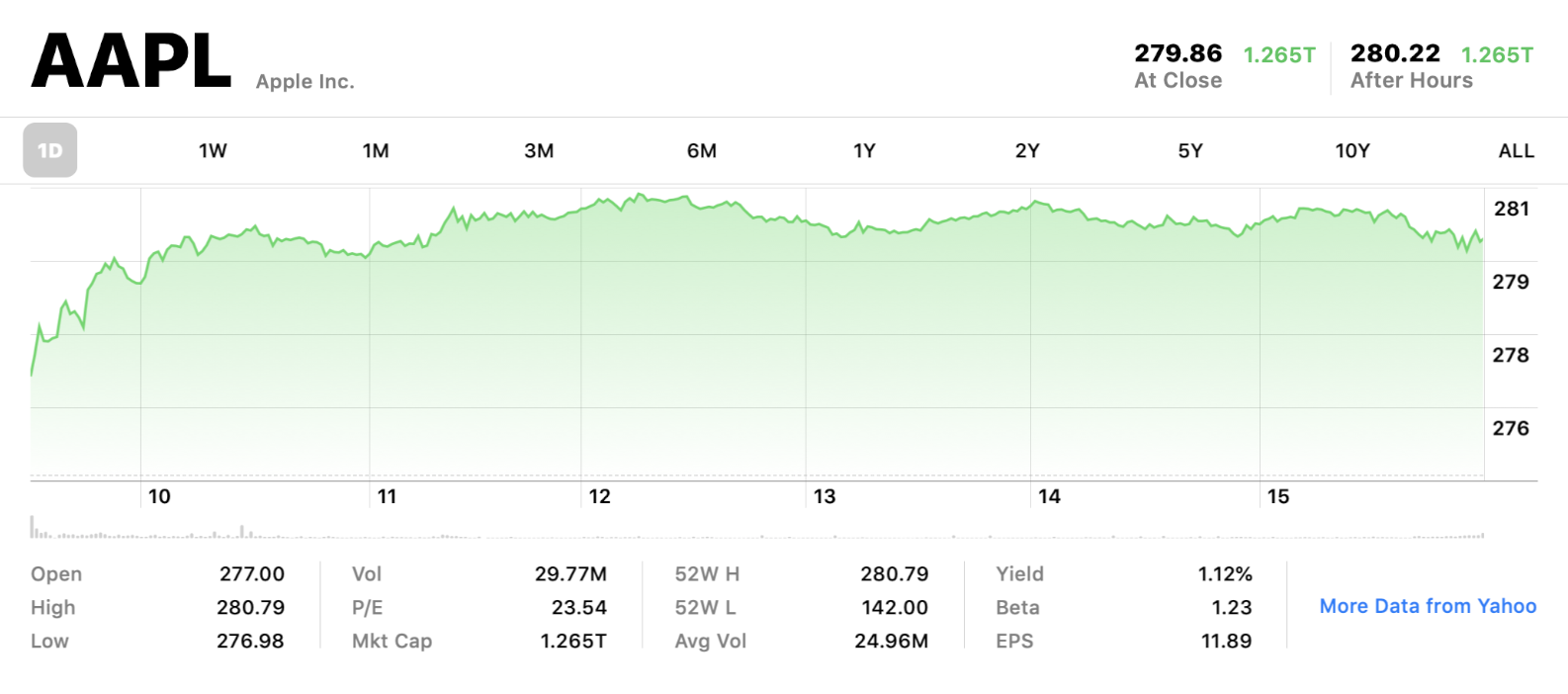 Last week’s rally for Apple shares was driven by indications that a phase-one trade deal between the US and China was likely. Monday’s rally was likely driven by news that that had happened. Apple shares hit new intraday and closing highs on Monday. Shares Monday hit as high as $280.79 before closing close to a dollar under that. Apple’s official closing price was $279.86 - nearly five-dollars higher than Friday’s close of $275.15.